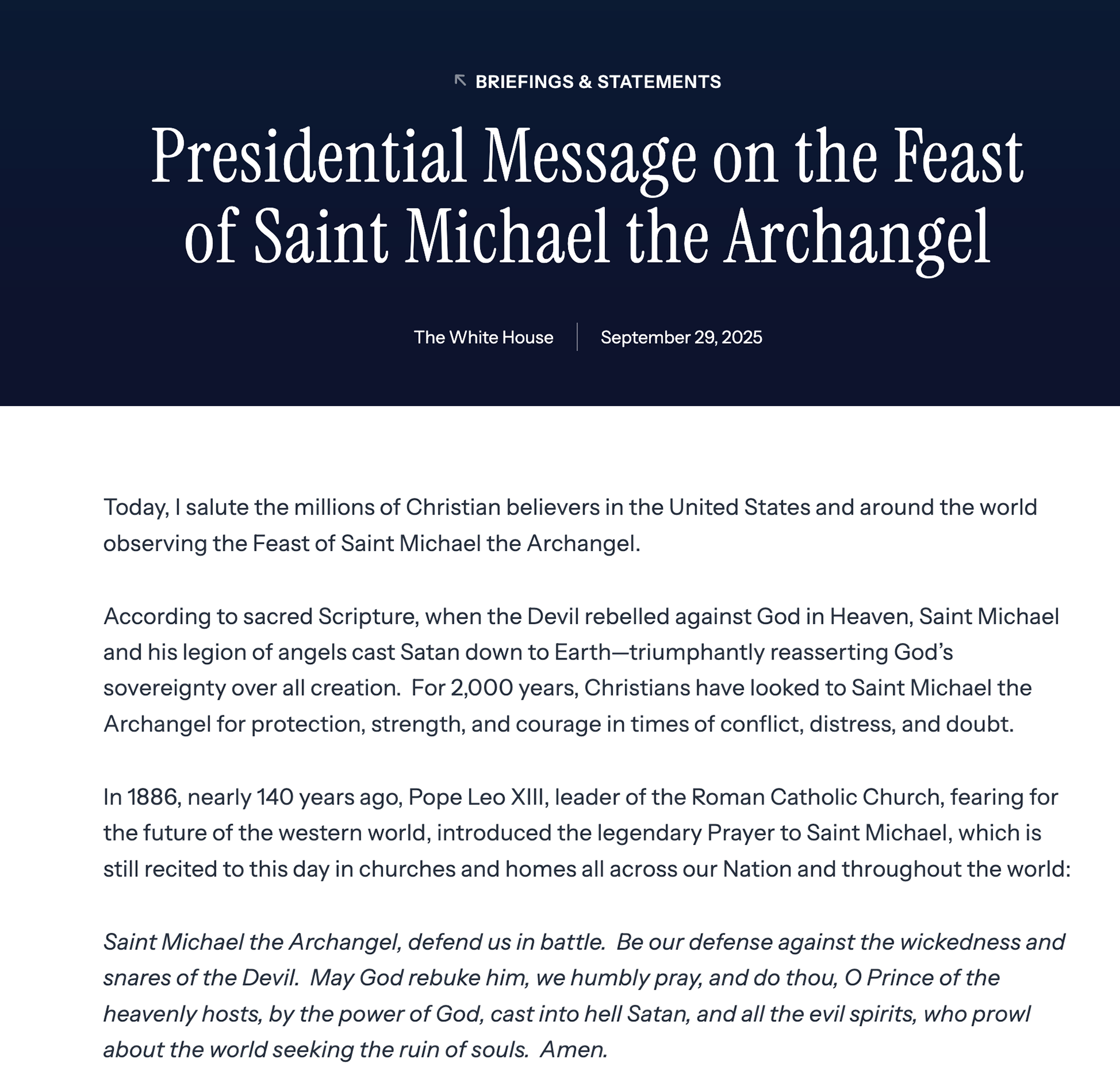 May God rebuke him we humbly pray; and do thou, O Prince of the Heavenly hosts, by the power of God, cast into hell Satan and all the evil spirits who prowl about the world seeking the ruin of souls.ย